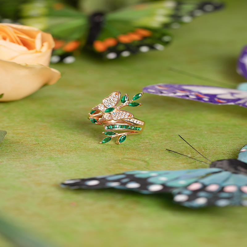 The garden butterfly series combines the flying butterflies with the swaying branches to outline the romance in the beautiful scenery. It is the yearning and pursuit of freedom and the most beautiful interpretation of love. Bright zircon adorns the wings of the butterfly, dazzling refraction charming luster, can not hide the rich love, in the heart to release, has become the most dazzling existence
